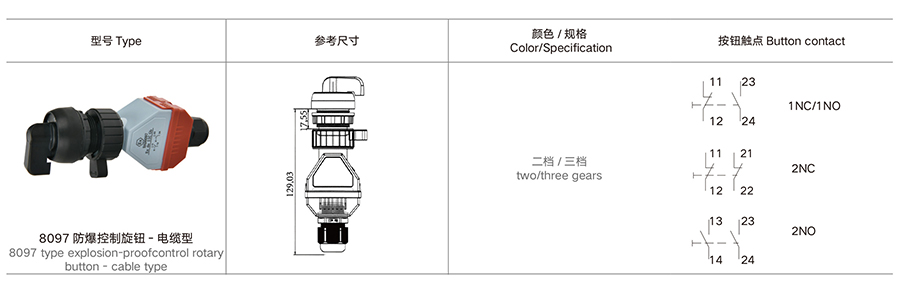 8097 防爆控制按鈕 - 綠 - 電纜型