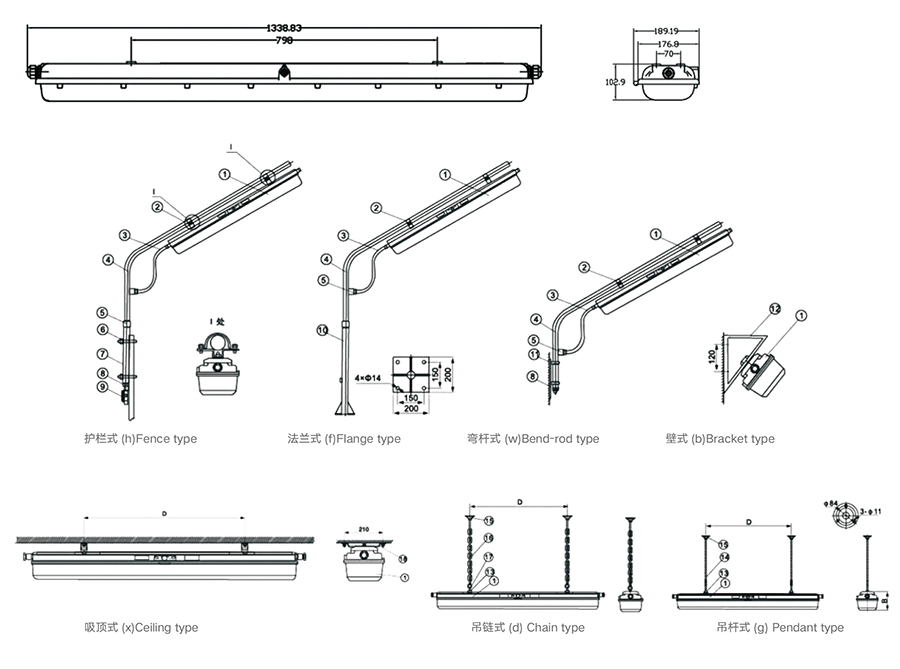 外形尺寸:1339×190×103mm