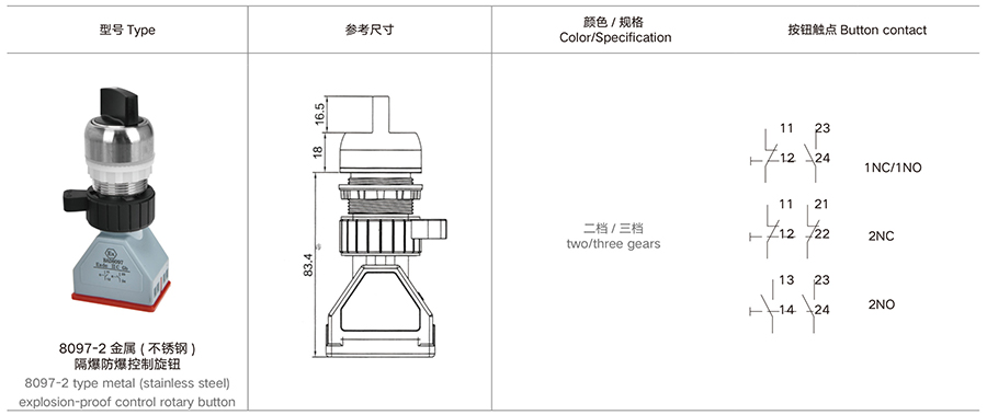 下一篇:8097-2 金屬 ( 不銹鋼 ) 隔爆防爆控制旋鈕