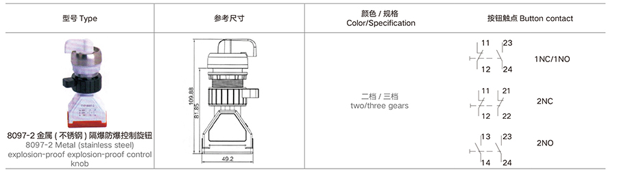 8097-2 型金屬隔爆防爆控制按鈕系列