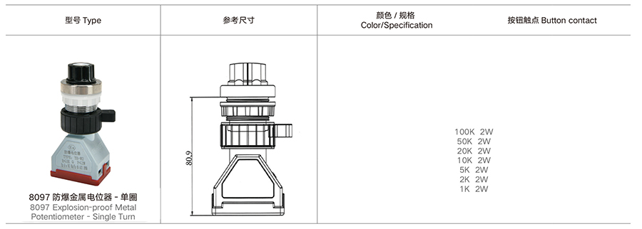 8097-2 金屬 ( 不銹鋼 ) 隔爆防爆控制旋鈕