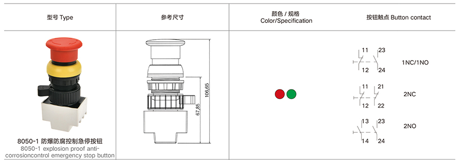 8050-1 防爆防腐控制鑰匙急停按鈕
