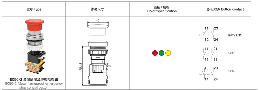 8050-2-2 金屬 ( 不銹鋼 ) 隔爆控制按鈕