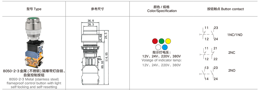 8050-2-2 金屬 ( 不銹鋼 ) 隔爆控制按鈕